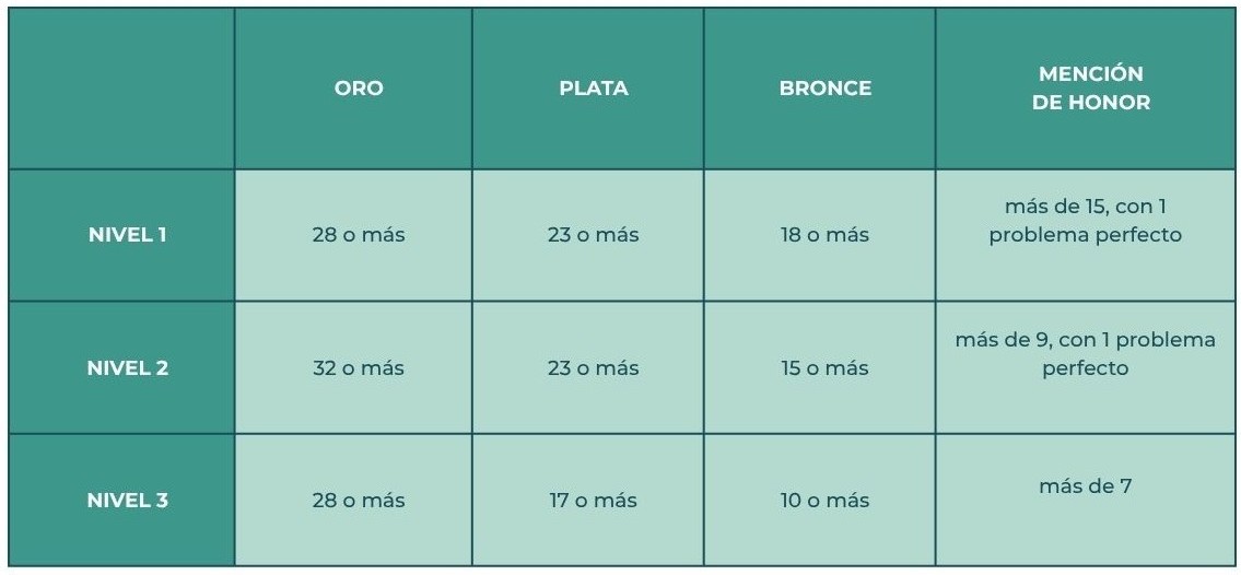 Los puntajes necesarios para alcanzar premios en esta edición fueron los siguientes: